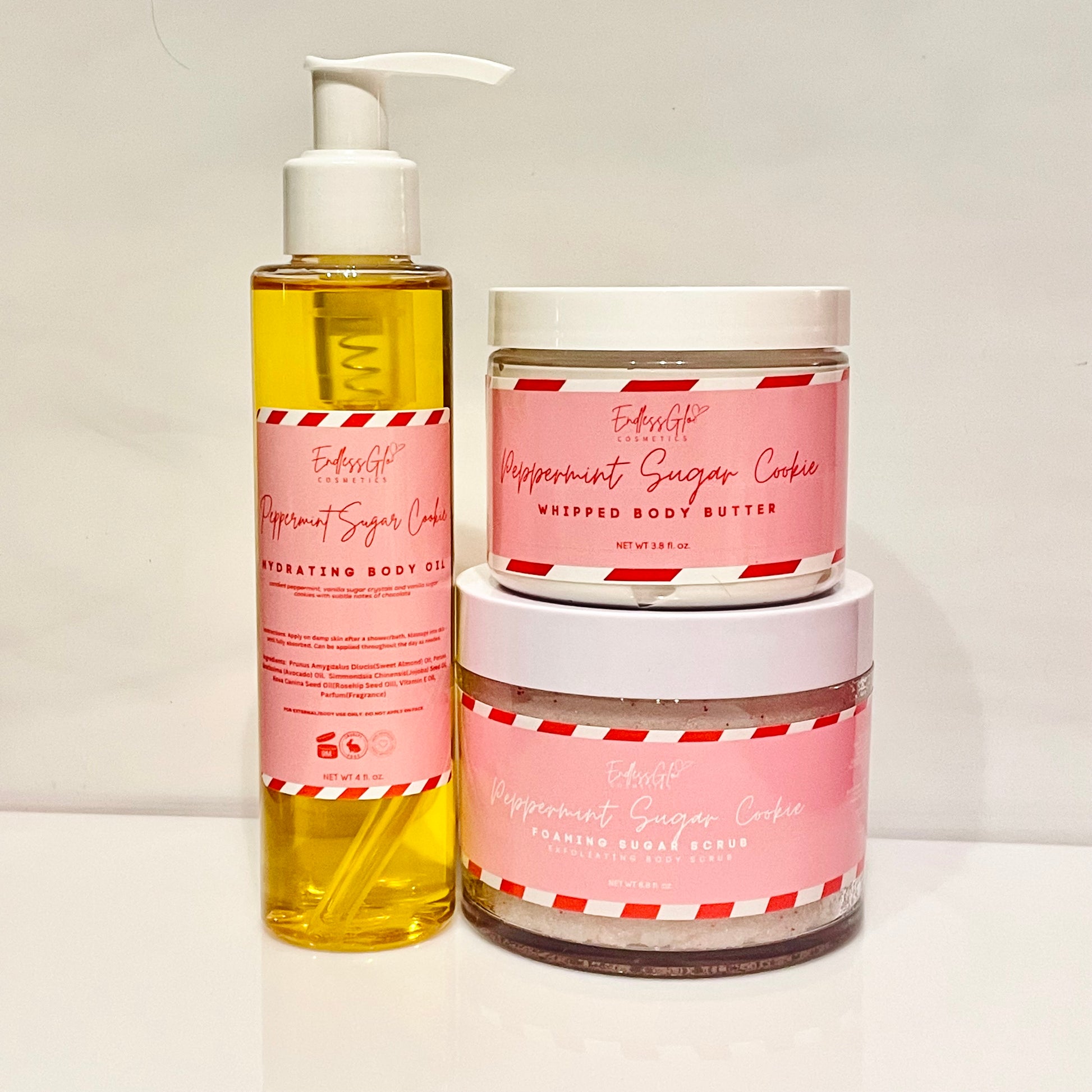 Grab this 3 step bundle for the silkiest and softest skin ever! This bundle will have you smelling like a sweet peppermint scent with notes of candied peppermint, sweet sugar cookies and vanilla sugar